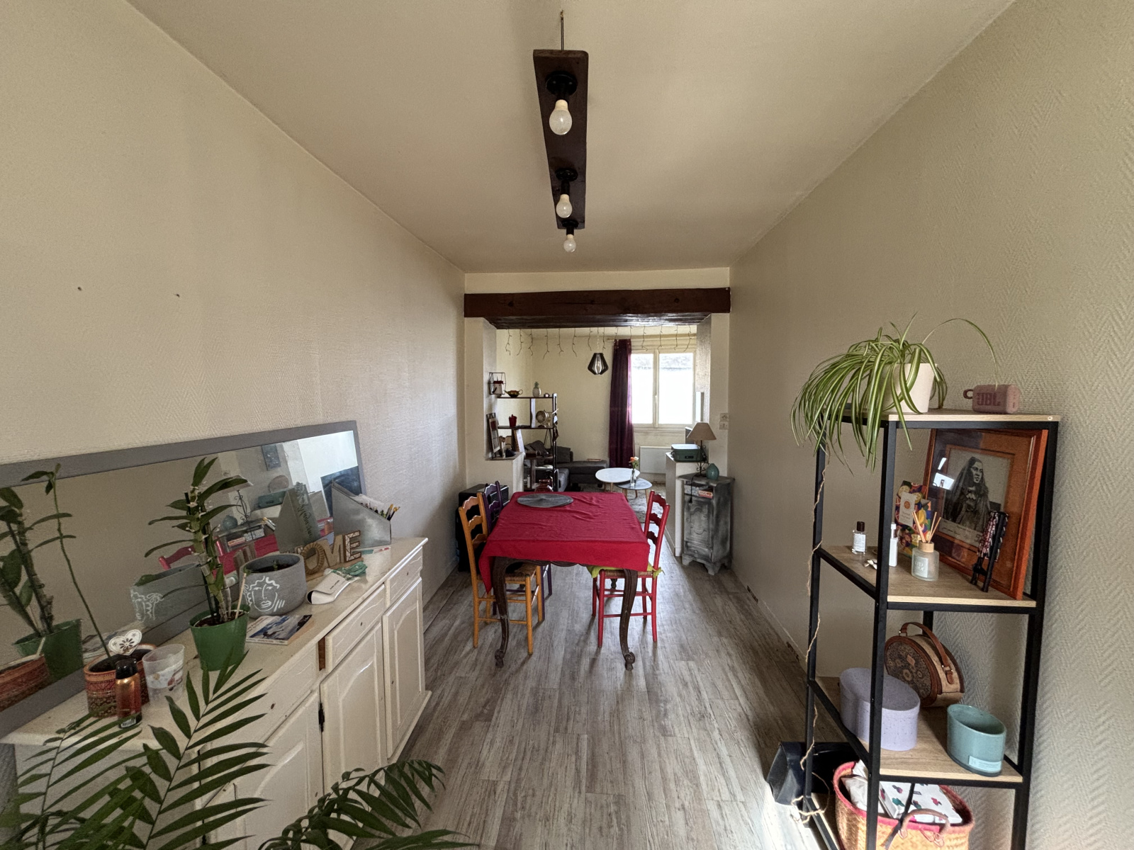 Le rez-de-chaussée se compose d'une cuisine aménagée, d'une pièce de vie, ainsi que d'une salle d'eau rénovée avec WC.