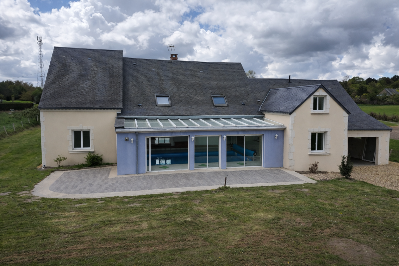 Développant environ 270 m² habitables (hors piscine), cette propriété a été pensée autour d’un véritable espace bien-être : une piscine creusée de 40 m², intégrée dans une pièce dédiée, entièrement chauffée et isolée, utilisable toute l’année.