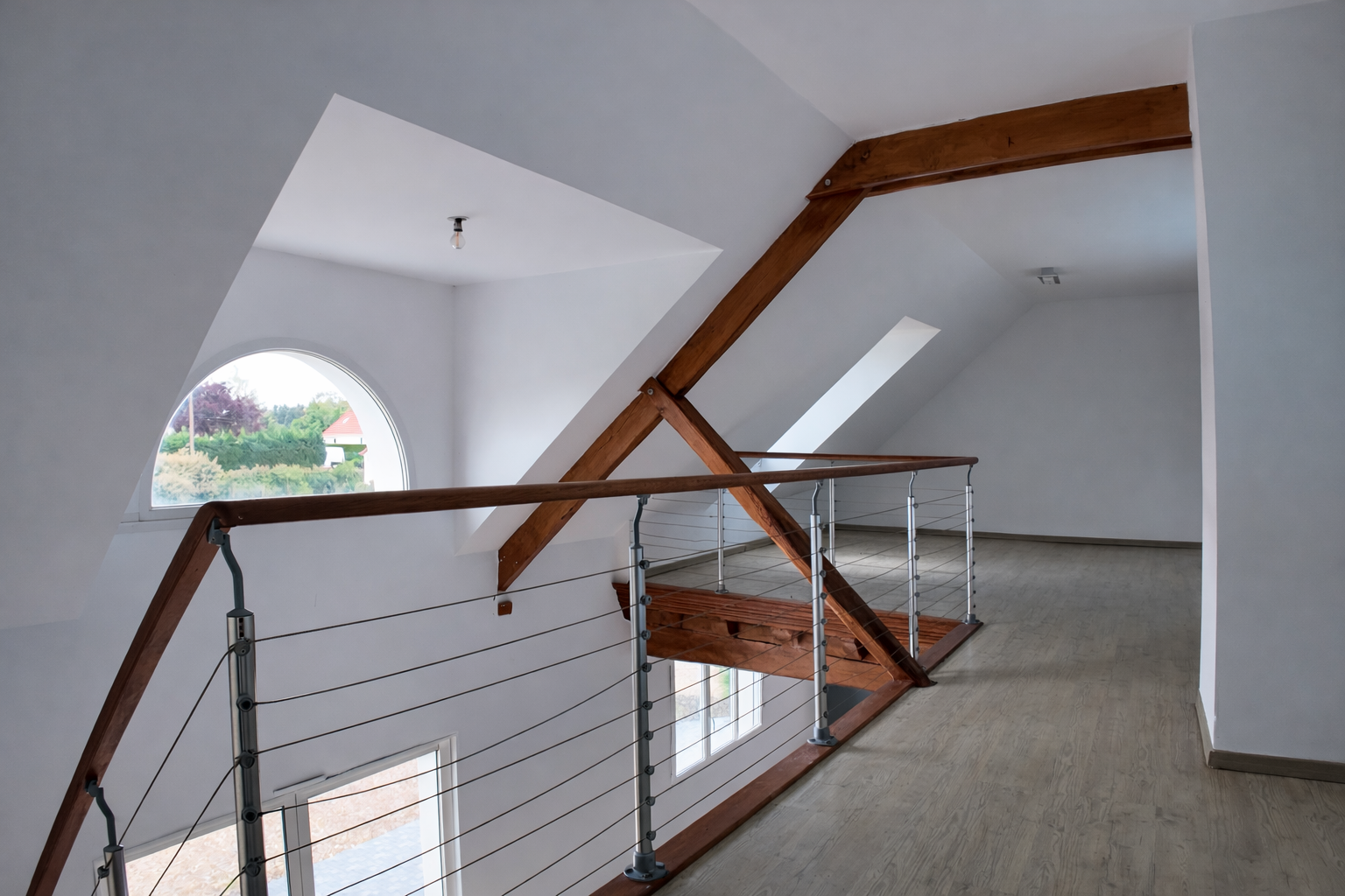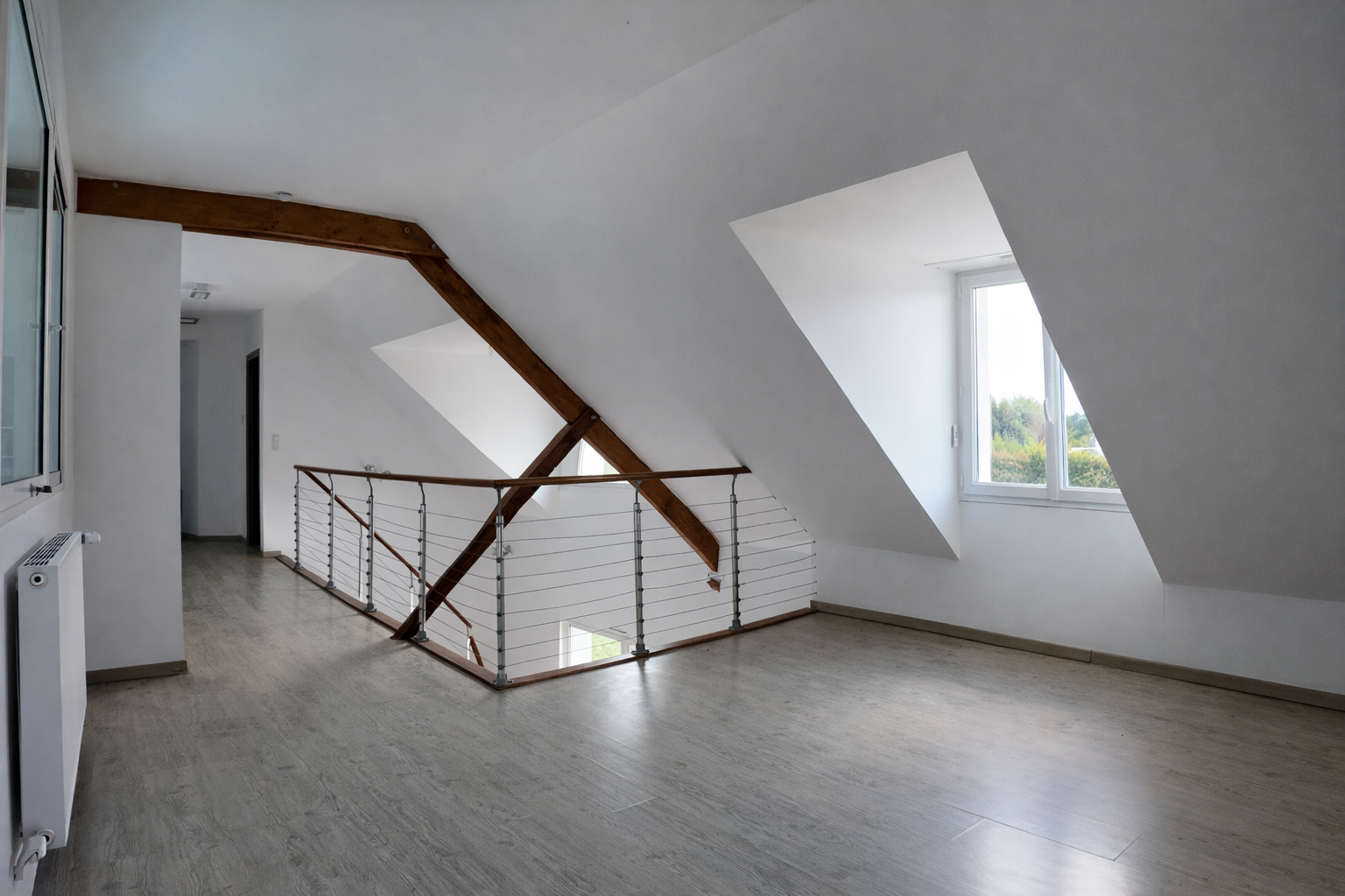 À l’étage, l’espace nuit se compose de trois chambres supplémentaires et d’une salle de bain. Une mezzanine ouverte apporte du cachet à l’ensemble avec une vue plongeante sur le salon et l’espace piscine, renforçant la sensation de volume et de luminosité. Un grenier aménageable vient compléter ce niveau, offrant encore un beau potentiel d’évolution.
